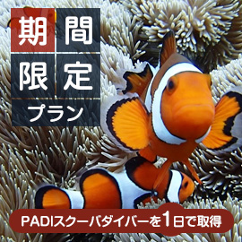 | PM | <限定水域1~3> 浅瀬で穏やかな海に移動して、器材のセッティングや基本的なスキルを習得して頂きます。 |