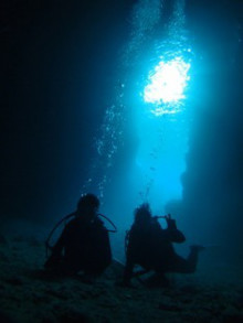 入っていく時は真っ暗な青の洞窟ですが、振り向いた瞬間真っ青な世界が広がっていましたね。