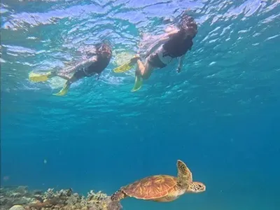 シュノーケリングでウミガメを見にいくアクティビリティです。高性能カメラで体験中の撮影付き、安心の少人数制ガイド付きです。