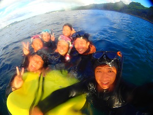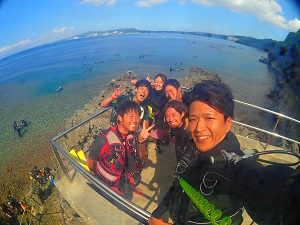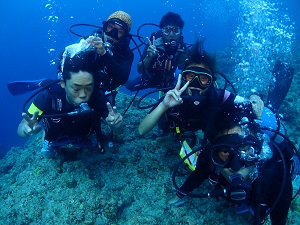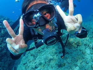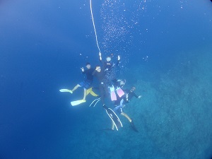 インストラクターは写真を撮ったりバブルリングを披露したりお客様のフィンが外れて下に落ちてしまったりと