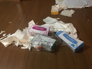 この荒らされたティッシュはマロちゃんのおトイレ処理で使おう😳