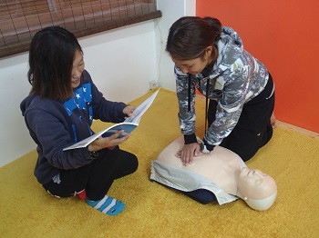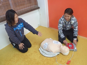 今日はAEDと心肺蘇生のトレーニングを全員で行いました。