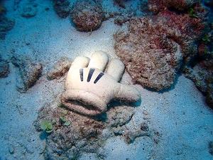 水中で寂しそうなミッキーの手が沈んでいました笑
