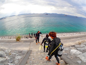 陸での作業もしますがダイバー達は調査ダイブもかかせません😉‼