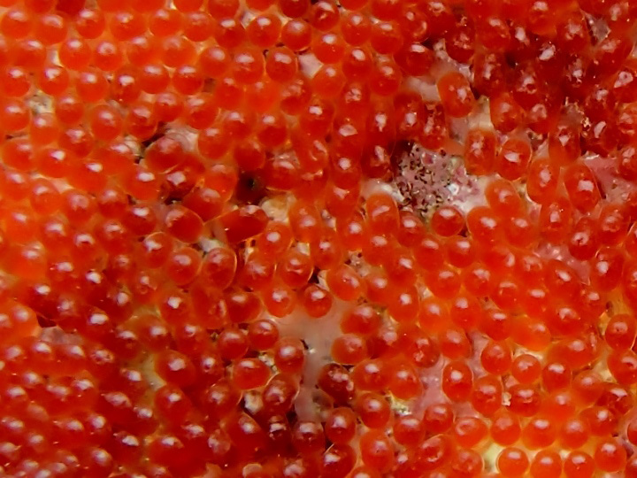 クマノミの仲間は、日本には6種類いるんですよ。その中のクマノミのタマゴの写真です。