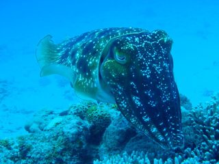 西部太平洋からインド洋の熱帯域に生息していて日本だと沖縄に生息しているコブシメ。