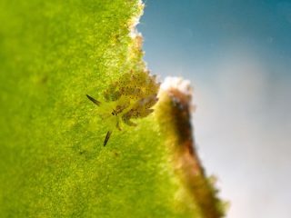 白色の半透明の体に、緑色の半透明な突起がたくさんあり、その先端がピンク色をしているキュートなウミウシです。